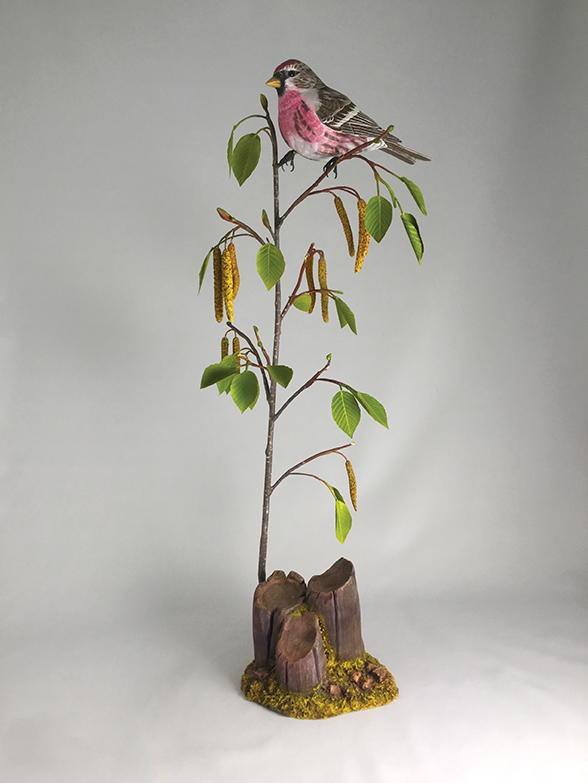 Choosing the right habitat can make or break a carving, so plan this stage carefully. A bird may perch on any tree, plant, rock, or other natural or man-made object within its range. However, it is usually best to place your bird in a setting where you are most likely to see it—in other words, in its natural habitat. Birds of the forest may occasionally appear in a grassland setting and grassland birds will now and then visit the forest. But I would stick with their usual habitat for a carving. In this article, I will demonstrate three different habitats that are suitable for the common redpoll.