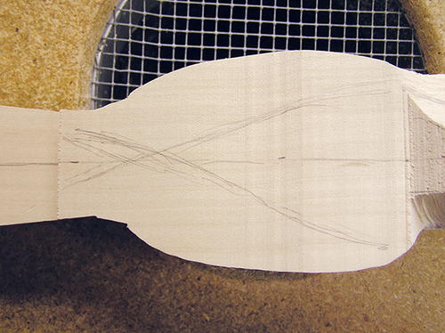 Now cut on the outside of the line that represents the over wing. Be sure not to cut too deeply into the lower wing. You want to leave enough wood to shape the lower wing. -