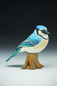 It wasn’t too long ago that the first Eastern blue jay showed up outside the window of my office in Montana. Its unusual call made me jump to my feet and when I spotted it I realized I had never seen this magnificently colored bird from the east in this part of the country before. The blue jay had found its way to the northwestern corner of Montana. East had met west. Since then my desire to carve this bird has never subsided. Anytime I became aware of a blue jay’s presence, I’d go out with my camera and take photos, knowing some day I would capture this bird in wood.