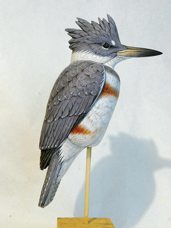 My goal in this article is to carve a fairly simple belted kingfisher (a smoothie) with the carving process centering on shape and form. I will leave a smooth surface and achieve the feather detail, shadowing, and shading through paint.