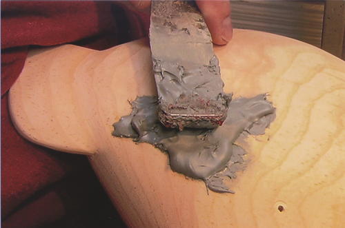I pack the hole full of body filler and sand it smooth. Also, I plug the holes I had drilled, using glue and tapered wood, sort of like a wedge. The deeper I pound, the tighter the hold.