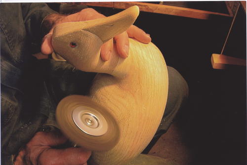 I use a Jerry Rig and a strop I made from sandpaper to give the bird a vigorous sanding workout. I want to sand the bird to the round.