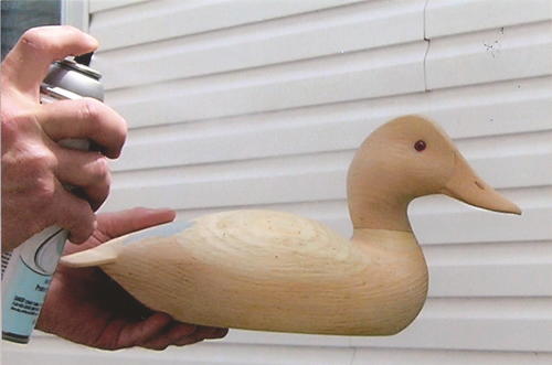 Finally, I spray Krylon matte finish on the decoy to seal it. I am now ready to start painting!