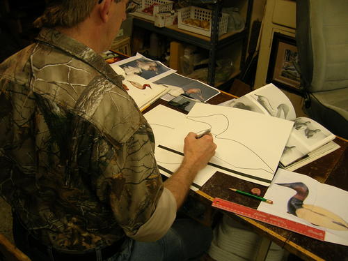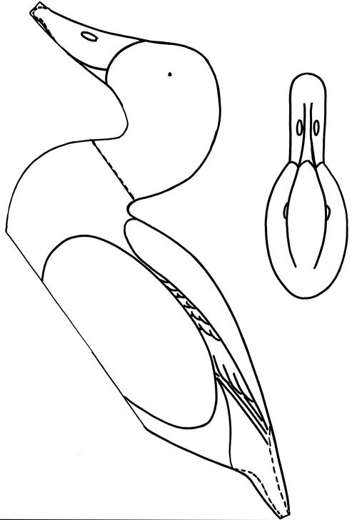 To develop my pattern, I found a lot of pictures in books, magazines, and on the Internet. I also had several photographs I took on my visits to the Ward Museum. Basically, you need a good side view and a good top view of the decoy.