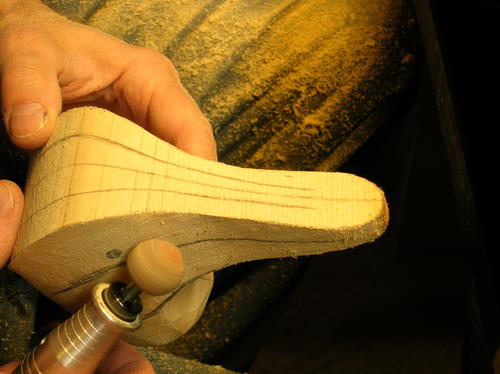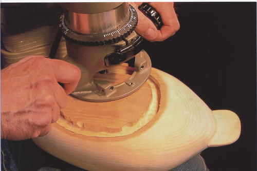I trace the location of my bottom plate onto the bottom of decoy. Then I use a router to carefully route a groove along the entire inside of the line I traced, to the same thickness as the bottom plate.