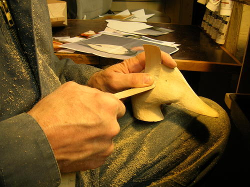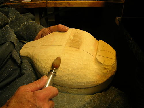 Here I am working the wood away near the tail. Note how I’m developing the roundness.