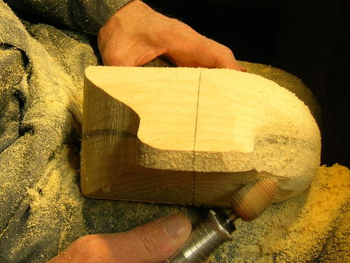 Here’s a front view of the head once it’s been roughed out. Keep the top of the head flat.