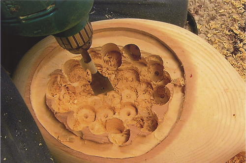Using a speed bore bit, I bulk out a lot of the inside of the decoy, leaving a lip for an epoxy seal.
