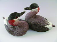 I had no way of knowing how many entries there would be in the Life-size Decorative Floating Waterfowl Pairs division. While grebes are typically not that popular with carvers, the species’ smaller size could attract more entries. Smaller carvings are easier to sell because they usually have a smaller price tag. It turned out that 16 pairs of various grebe species were entered in the 2014 competition.