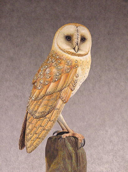 The final stage to this sculpture is painting the bird. The barn owl has a wide range of coloration, from blond (light tones) to very dark markings. After you’ve finished and you stand back to take a look at your work, the feelings of excitement and satisfaction will let you know you’ve hit the mark.