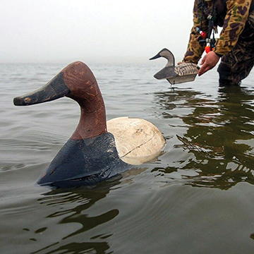 When I started thinking about subjects to cover, the first person who came to mind was Pat Gregory. Pat is an Illinois carver who carves and hunts over many northern styles of historic decoys. He carves Illinois River blocks, Michigan feather-stamped blocks, and also a Canadian style that looks like no others. A water-fowling purist who carves with traditional tools, uses traditional classic boats, and hunts over hand-carved decoys, Pat is the great-grandson of famed Illinois River carver George “Homerun” Barto of Tiskelwa, Illinois. He learned to carve from mentor Art Behemetuik, who was one of Barto’s students. Pat started carving in 1984 and makes 100 to 200 decoys a year.