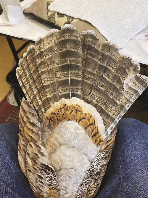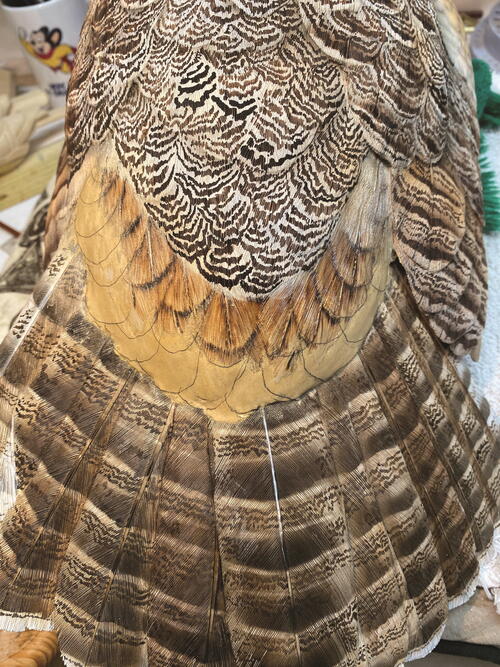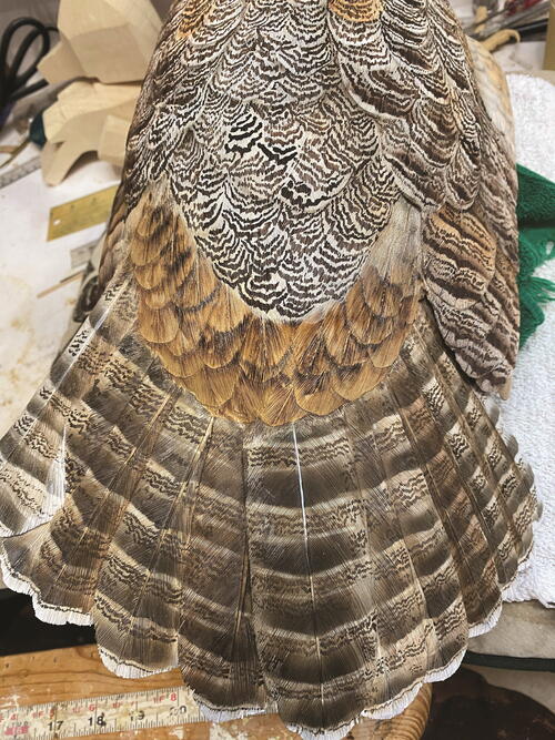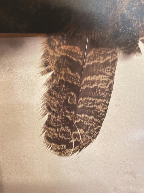 This contour feather of a real great horned owl reveals the complex plumage detailing that must be done. Pack your patience, my friends—we’re in for a long ride!