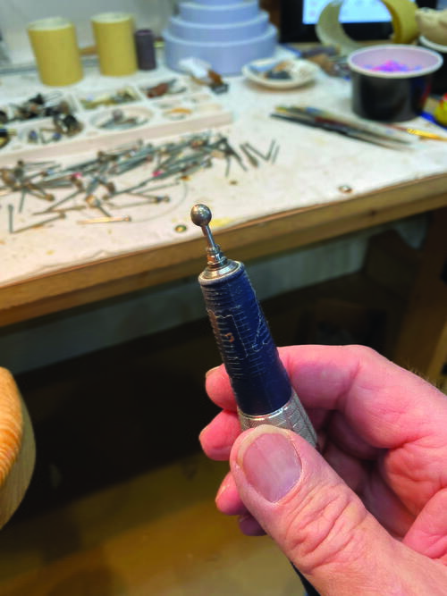 Next, I lightly stone in the textured surface using a 3/16” diamond cylinder.