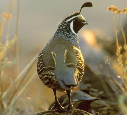 The California quail’s prominent head plume is one of the bird’s more striking characteristics. The aptly named quail has been California’s state bird since 1931.