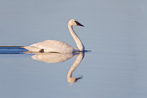 When the gray and bedraggled hatchling throws off its shell and gazes at the world for the first time, it sees white. Lots and lots of white. That view of its mother’s belly is a cygnet’s introduction to the world as a member of one of its most striking bird families—the swans. North America has three resident swan species: the trumpeter (Cygnus buccinator), tundra (Cygnus columbianus), and mute (Cygnus olor) swans.