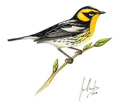 Blackburnian warblers spend their winters in the neotropical forests of Central and South America. Early in the spring they speed across the Gulf of Mexico on the way to their breeding homes in the southern boreal forests of North America. Because Blackburnians are nighttime migrants, few people spot them during their flight time, even though millions of birds make the journey. This is the prime time for warbler hunters, as dozens and even hundreds of birds settle into small areas to ravenously feed and refuel after each night’s journey. It’s an opportunity for bird-watchers to get a rare and close-up look at this stunningly beautiful species.
