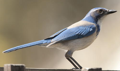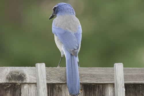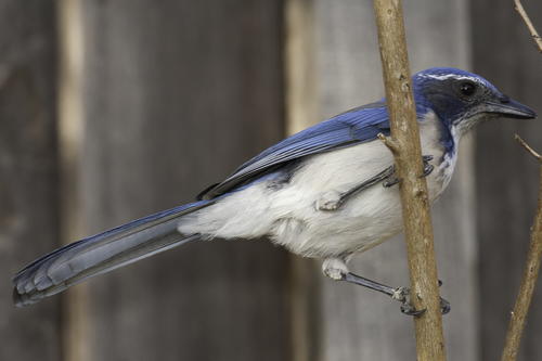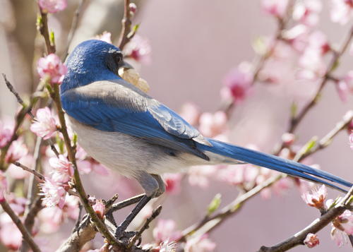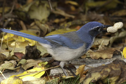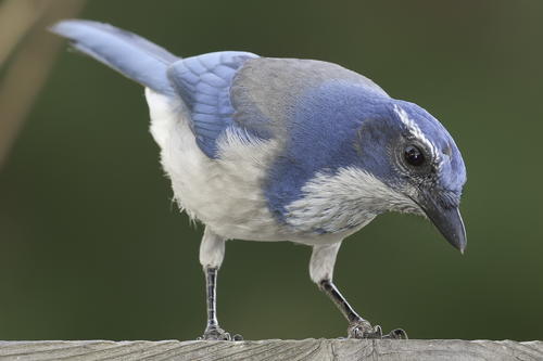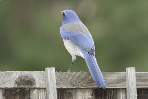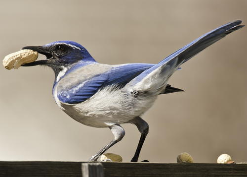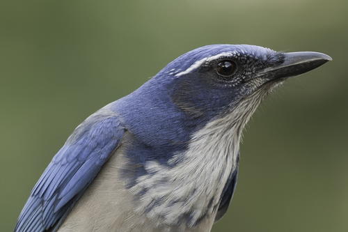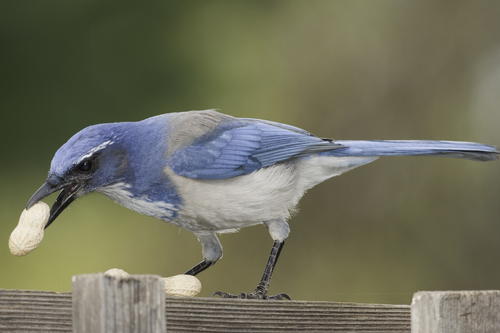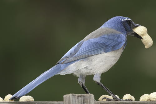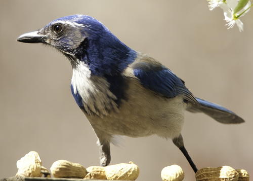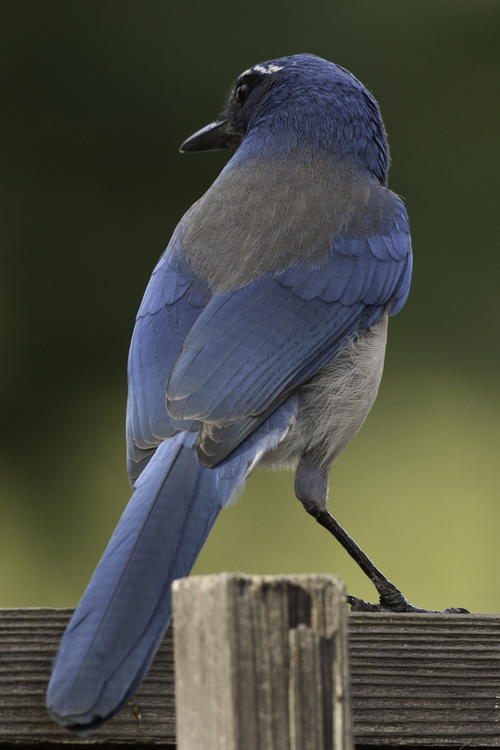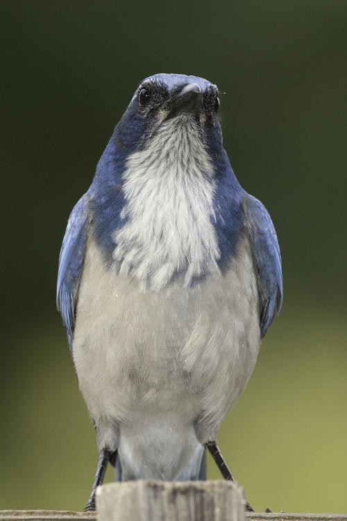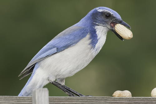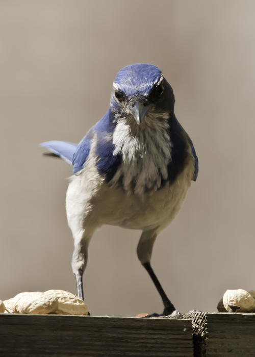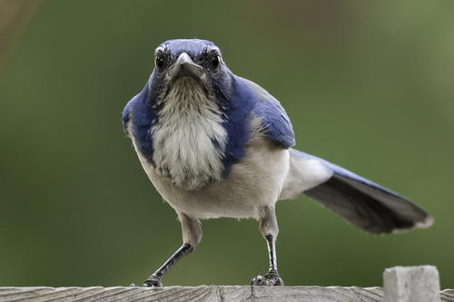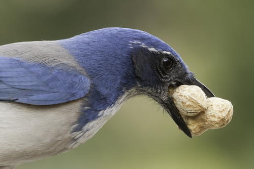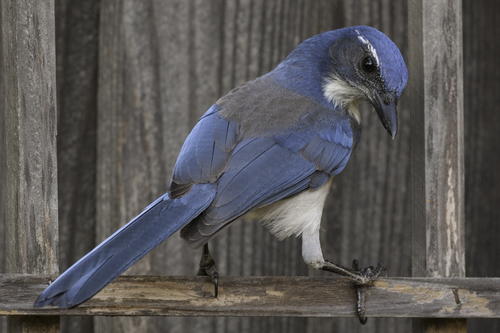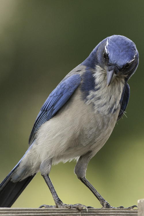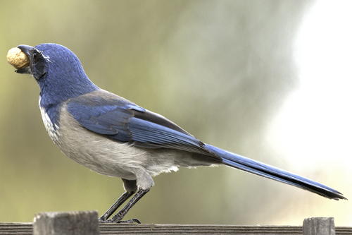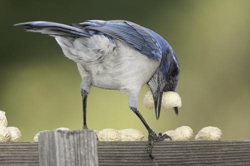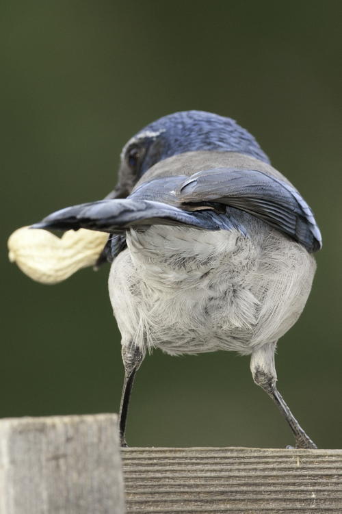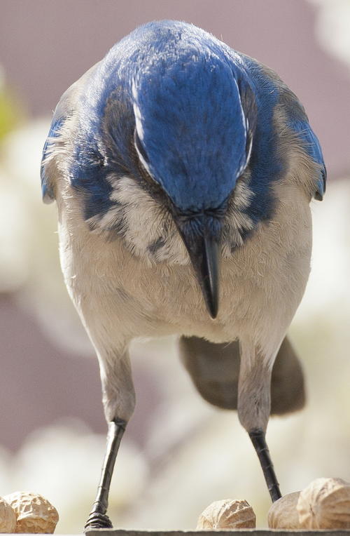 “The scrub jay, like other jays, has a lot of character,” Jerry wrote in his article. “You can spend many hours watching them in and around the feeders and yard. The long tail, streamlined body, and non-crested head make this jay appear longer and slimmer than the Steller’s and Eastern blue jays, even though they are all virtually the same length.”