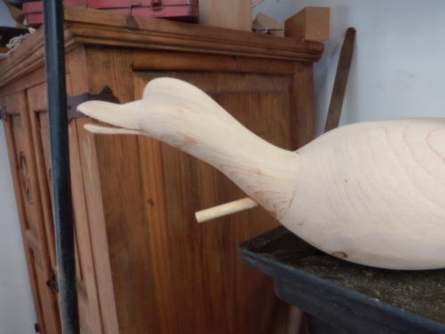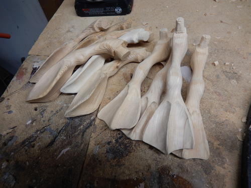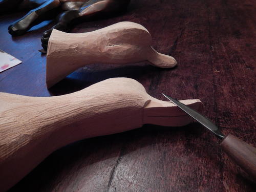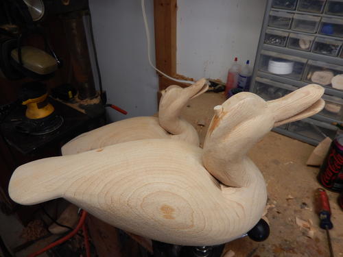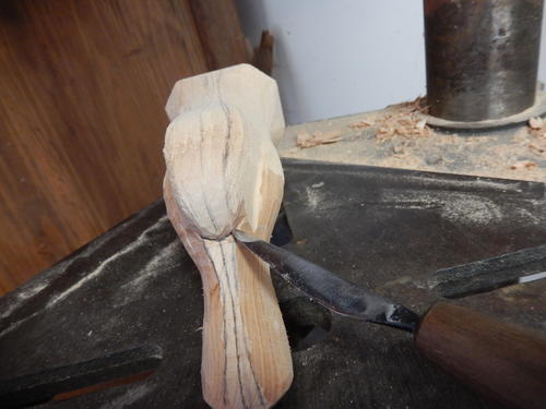 To work down the bodies, I used draw knives, spoke shaves, and rasps. I gave a bit of extra attention to the tail shapes, as they would be so prominent in the flying birds.