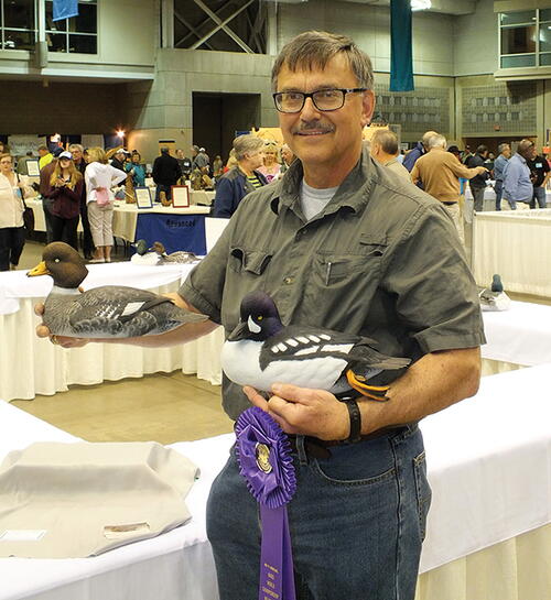 This piece placed second in the World Shootin’ Rig category, alongside Tom Christie’s first-place scaup rig and Jeff Krete’s third-place buffleheads.