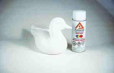The next step is to primer coat the bird. Using an enamel-based flat white paint, spray the entire surface (two coats if necessary). Allow the paint to dry and harden overnight. This primer coat will fill any remaining scratch marks and give you a nice white canvas to paint on.
