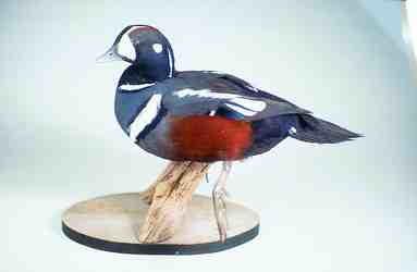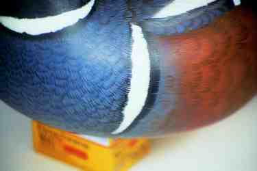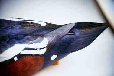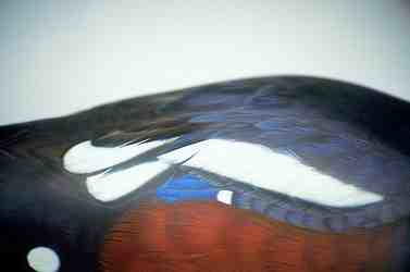 Proper reference is important for any project. I was fortunate, many years ago, to obtain a harlequin skin. (With a little work you can mount your own skin.) This skin was mounted by a fellow carver, Lionel Dwyer. In the past, the Royal Ontario Museum has loaned study skins to carvers. Natural history museums near you may have study skins, too. My point is that reference materials is not impossible to obtain.