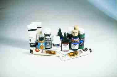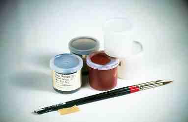 When painting over a long period of time, it is wise to mix up and store main colors in small, plastic jars (film canisters work just as well). When using water-based paints (acrylics), I prefer to use #2 or #4 Loew-Cornell paintbrushes. For very fine lines, I use a #0 Raphael. The four main colors to be used are: