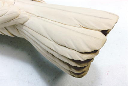 With a sanding mandrel roll, create ripples in the feathers. The ripples tend to appear in the bottom third and inside edges of the feathers. Undercut the primary feathers with a diamond disk. Primaries are similar in size, so the bottom feather will not be wider. When cutting, reduce the width with a K-tip burner. With the diamond point, reverse the ripple, cutting on the underside of the feathers. Use the K-tip to create some separation in a few of the feathers, but don’t overdo it.