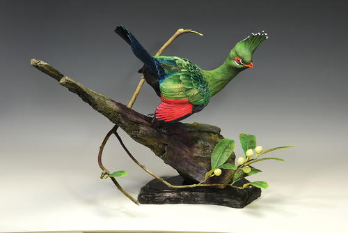 In 2016, this Livingston’s turaco won Tom his third best in world decorative life-size wildfowl at the Ward.