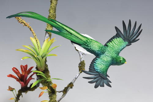 Jeweled Flight depicts a resplendent quetzal. The piece appeared in the 2015 Birds in Art at the Leigh Yawkey Woodson Art Museum in Wausau, Wisconsin.