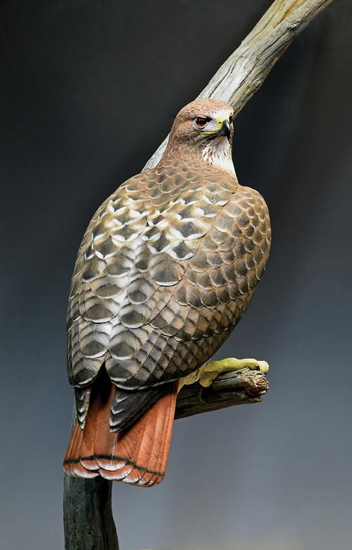 Not that Tom carves only tropical birds. One commission he did recently was for the Hawk Mountain Sanctuary in Kempton, Pennsylvania. It was for five full-size raptors—a red-tailed hawk, bald eagle, peregrine falcon, turkey vulture, and great horned owl. A commission for the Jacobsburg Environmental Center in Nazareth, Pennsylvania, included an eagle, kestrel, broad-winged hawk, and several warblers.