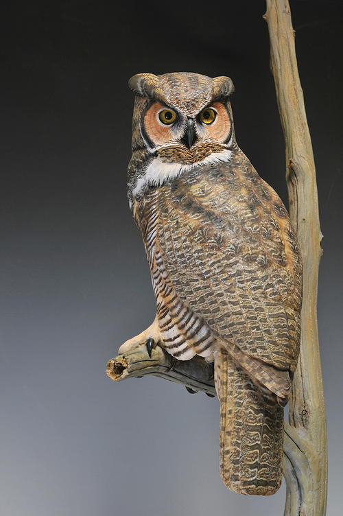 “I knew it was novice, and it was novice,” Tom says now of that piece. But at the show he talked to judges and carvers, including Glen Ladenberger, Gary Yoder, and Judy Snyder. Ladenberger advised him to carve not as though it were taxidermy and to approach it as art, where you can accentuate and embellish and exaggerate. Snyder told him to go to museums and look at study skins to get a good grounding on avian anatomy. He listened carefully.