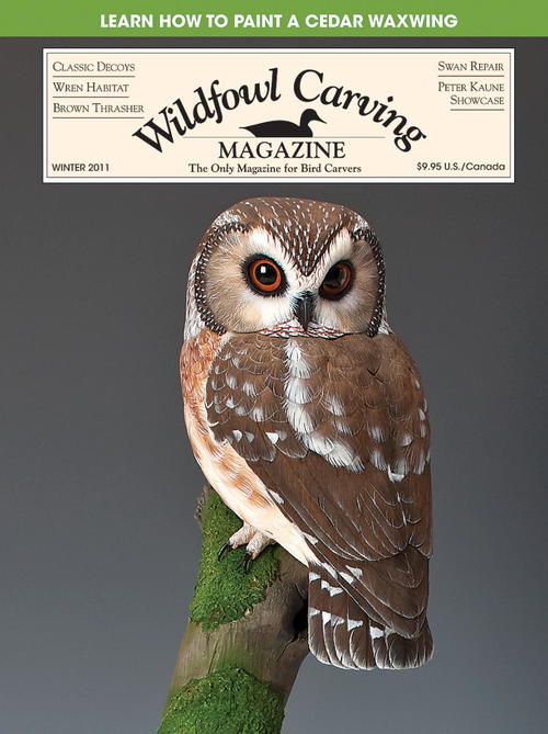 This Winter 2011 issue gives readers a tour of Peter Kaune's "carving cockpit," the first glimpse of a saw-whet owl project, and a dual history and carving lesson on decoys done in the Blair style. Jamie Welsh will also walk through the process of restoring a carved wooden swan damaged by fire and how she used her skills to tackle the tall order. This issue also features two different songbirds, the cedar waxwing and the brown thrasher, which will delight readers with their unique personalities.